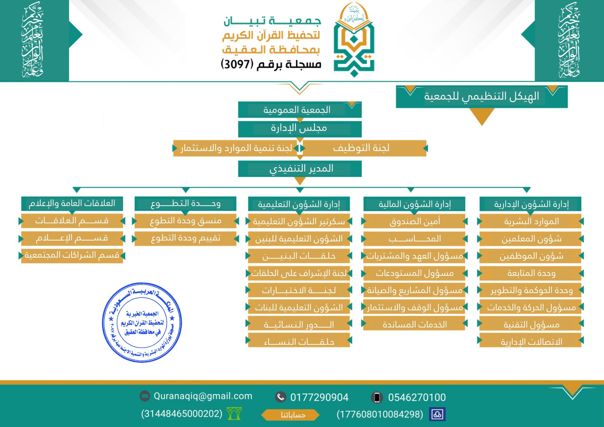 الهيكل التنظيمي لجمعية تبيان لتحفيظ القرآن الكريم بمحافظة العقيق