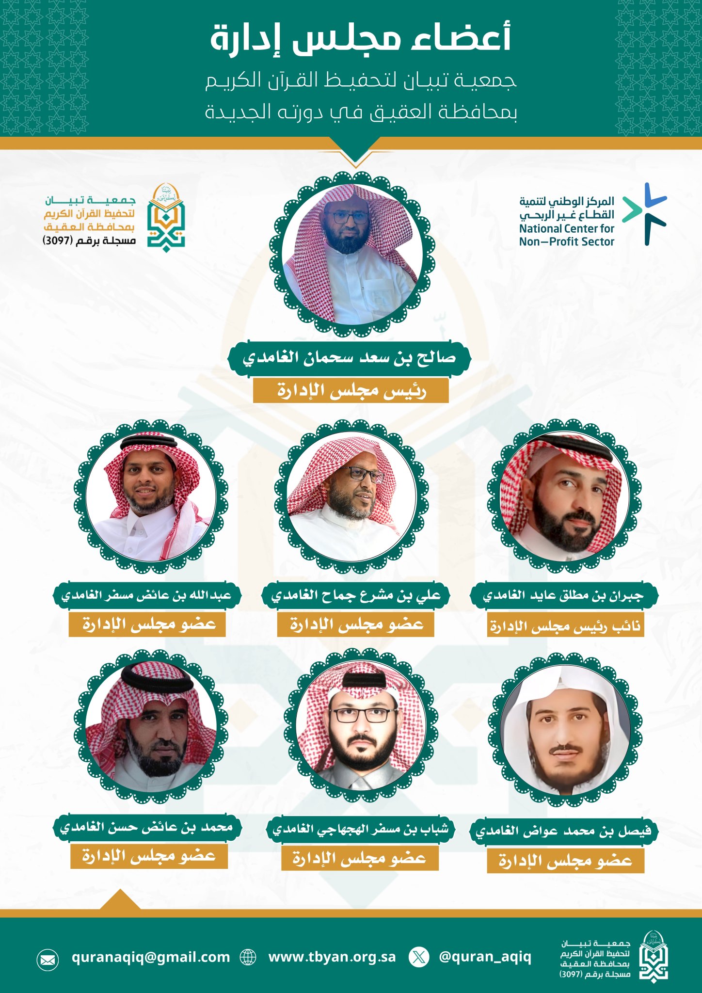 مجلس إدارة جمعية تبيان لتحفيظ القرآن الكريم بمحافظة العقيق